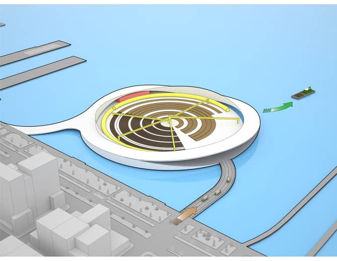 Ese problema de Nueva York se podría solucionar colocando varios Green Loop a lo largo de la línea de costa. Estos modernos vertederos aprovecharían la infraestructura de transportes existente, empleando camiones para entregar los residuos, y embarcaciones y trenes para recoger el compost.