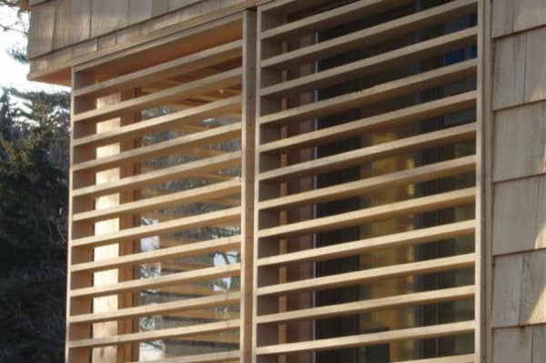 Esta pequeña cabaña de madera se construyó para cumplir dos funciones. Tenía que servir como refugio para el trabajo de un escritor, y para guardar una canoa. Está situada en la desembocadura del río Sheepscott en Westport (Maine, EE.UU.), y tiene una superficie de apenas 18m2, suficientes para definir un lugar tranquilo junto a un muelle.