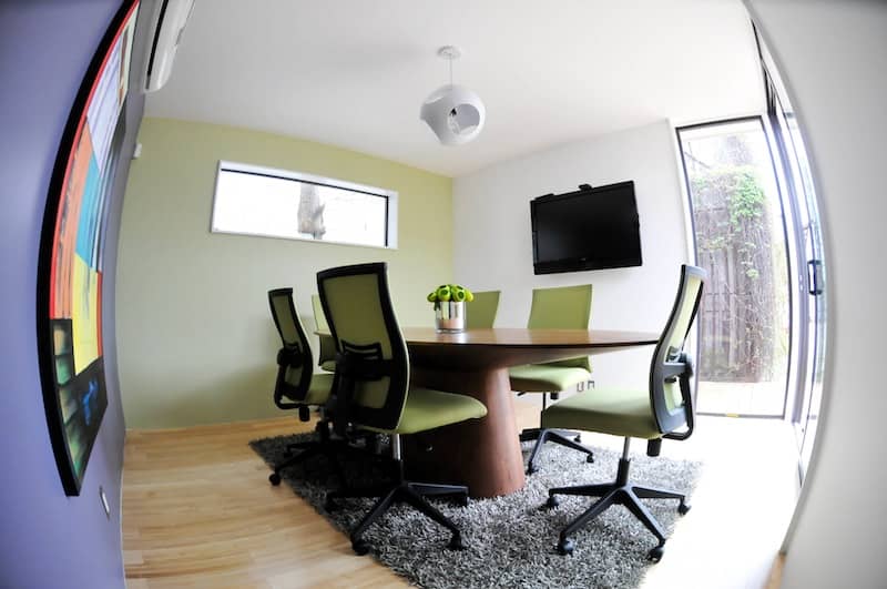 Estas imágenes corresponden a un proyecto de ampliación de unas oficinas de una empresa de Austin (Texas, EE.UU.). Se valió de las oficinas prefabricadas de Sett Studio, una compañía de la misma zona. En esta ocasión se necesitaban dos espacios con funciones diferentes. Uno para utilizar con cuatro puestos de trabajo, de 15,61m2, y otro cobertizo más pequeño (13,4m2) para una sala de reuniones. Es un ejemplo de cómo con estudios prefabricados se pueden añadir espacios de trabajo elegantes y sostenibles a las instalaciones de cualquier compañía, de manera rápida, y a un coste aceptable.