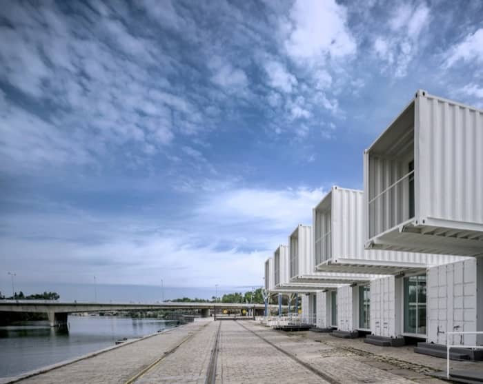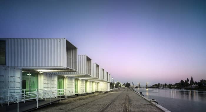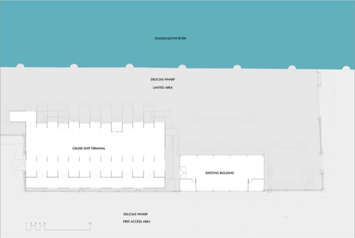 En el Puerto de Sevilla era preciso construir una nueva Terminal de Cruceros. Se hacía necesaria una sala de usos múltiples flexible, con capacidad para una cantidad indeterminada de pasajeros regulares. Dicha ampliación debía tener también un carácter extensible, pudiendo desmontarse y trasladarse a otro lugar con facilidad. Y lo más importante de todo: construirse en no más de 15 días, tiempo que transcurre entre el atraque de dos cruceros consecutivos. Con estas premisas, la autoridad portuaria propuso el uso de contenedores marítimos para el diseño del nuevo edificio.