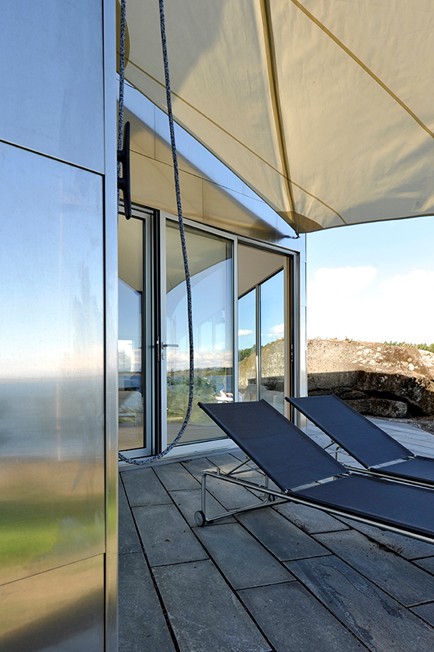 Aluminum Cabin es una insólita casa de vacaciones situada en un archipiélago de la provincia Vestfold (Noruega). Está construida como sustitución de una antigua cabaña. Se compone de tres volúmenes, que a su vez definen tres espacios para disfrutar al aire libre, según la hora del día.