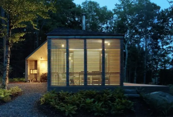 La Cabaña Stealth es un proyecto construido junto a un lago, cerca de Bracebridge (Ontario, Canadá). Se hizo empleando madera de cedro, consiguiendo una buena integración con el paisaje. Los clientes se debatían entre un diseño de cabaña tradicional de madera y algo más moderno. Pero finalmente se construyó un edificio que está a medio camino, y con estrategias sostenibles que reducen su impacto medioambiental.