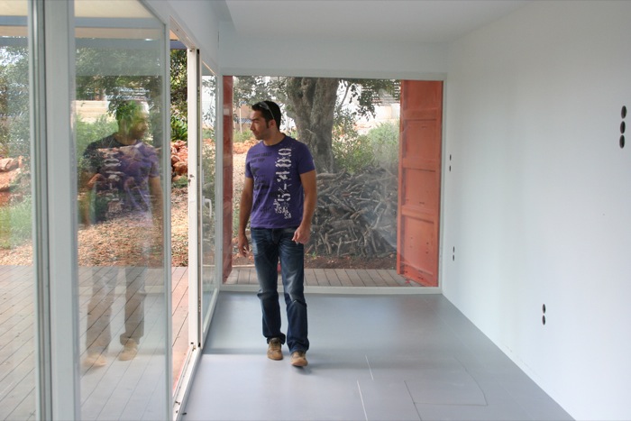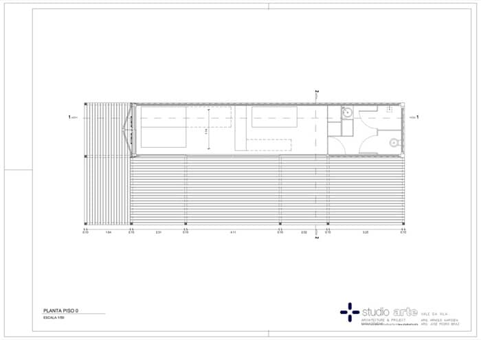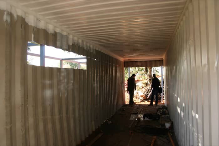 El contenedor se ha dejado diáfano, para que el espacio se pueda utilizar como dormitorio, sala, y comedor, dejando el baño en uno de los extremos. No tiene cocina, ya que los huéspedes utilizan una que hay aparte.