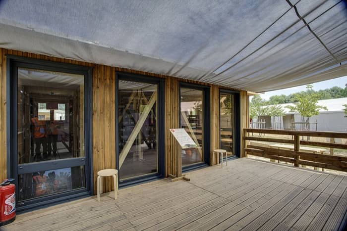 Esta vivienda está fabricada con estructura de madera, y aislada con lana de roca (resistente al fuego), siendo muy adecuada para cualquier climatología. Se inicia con el módulo de emergencia (SM), que tiene una superficie de 11m2 y se utiliza como dormitorio para dar cobijo a los afectados por la catástrofe. Más tarde puede ampliarse con el módulo mecánico (MM), que contiene los servicios y el núcleo técnico de la casa. Es el que incluye el cuarto de baño y la cocina.