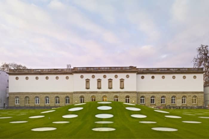 Pero la obra estrella del Museo de Städel es sin lugar a dudas la nueva sala subterránea. Está situada en el patio central, con una azotea abombada que está recubierta con un hermoso césped. Hay grandes tragaluces que facilitan la entrada de luz natural durante el día a las salas de exposición situadas debajo.