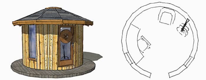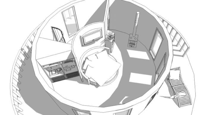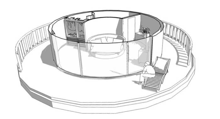 Básicamente es una estructura de madera (alerce, roble, y castaño, de origen local), con una claraboya en el centro. Tiene una terminación completamente aislada e impermeabilizada, instalación de electricidad, ventanas de doble acristalamiento y gas argón. Viene con los acabados interiores y exteriores completos, los cuales se pueden personalizar. Las hay de varios diámetros (3, 4, 5, 6, y 8 metros), donde lógicamente las más grandes son las adecuadas para poner una cama. Según se puede ver en los dibujos que hemos añadido en la galería, puede tratarse de un espacio diáfano, o incorporar baño y cocina.
