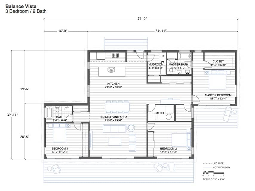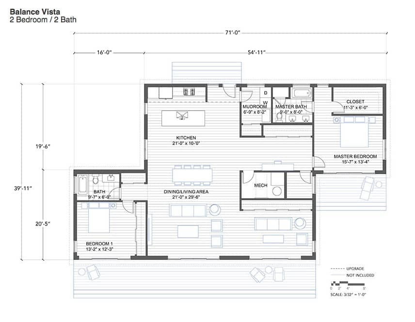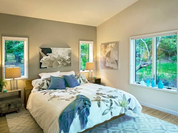 La Casa Balance está dentro de la categoría de modelos de 2 y 3 dormitorios. Es muy adecuada tanto para familias en crecimiento como para aquellas en las que los hijos empiezan a independizarse. Es un edificio de una sola planta con un gran espacio para el salón, cocina y comedor. Alcanza una altura de casi 5 metros para permitir ventanas de las mal llamadas triforio*. También hay grandes puertas correderas para salir al jardín. El dormitorio principal está equipado como una suite, es decir, con baño y ropero. El resto de dormitorios son habitaciones amplias, pudiendo uno de ellos configurarse como espacio de trabajo. Como ocurre en el resto de casas prefabricadas de Blu Homes, su cocina está organizada en isla.
