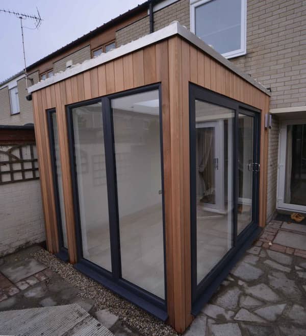 - Studio Corner. Estas pequeñas construcciones son de planta cuadrada, en 5 modelos distintos, desde 3.5 x 3.5m hasta 6.2 x 6.2 metros. En estas casetas una de las esquinas presenta un chaflán, que es donde está la puerta de acceso.