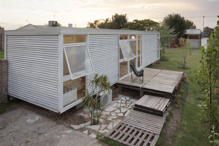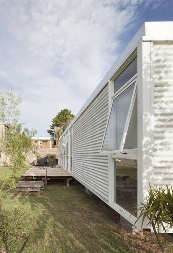 No todas las viviendas de auto-construcción tienen por qué ser de madera, ni tan diminutas. La Casa Mía, está ubicada en Santo Tomé (Argentina), alcanza los 36m2, y es un espacio de vida hecho con muy pocos elementos. Resumidamente se podría también titular como: industrialización, reciclado, y naturaleza.
