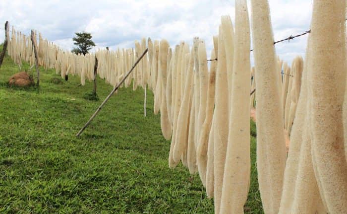 La fibra de la luffa absorbe muy bien dicho colorante, y ha sido bellamente moldeada para la creación de estas piezas poligonales. Están hechas con diferentes tonalidades de azul, que aportan una nueva dimensión a las paredes, decorándolas y mejorando la absorción acústica en las habitaciones, tanto de viviendas como en oficinas.