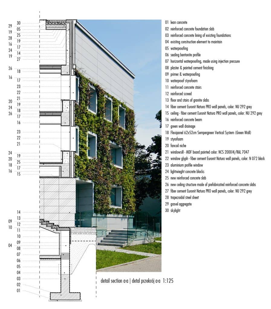 Estas fotos corresponden a un antiguo edificio residencial (de 1933) situado en el barrio Wierzbno de Varsovia (Polonia). Fue rehabilitado para utilizarse como sede de la Fundación de Ciencias de Polonia. A pesar de tener su fachada protegida por la Oficina de Preservación de la ciudad, la reforma incluyó un frondoso jardín vertical exterior.