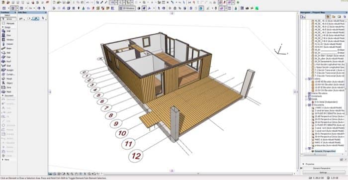- Se utilizó una aplicación BIM para dibujar y detallar absolutamente todo, desde la pequeña bisagra de un mueble, hasta detalles de puertas y ventanas, con el fin de poder planificar la línea de montaje y no dejar nada a la improvisación.