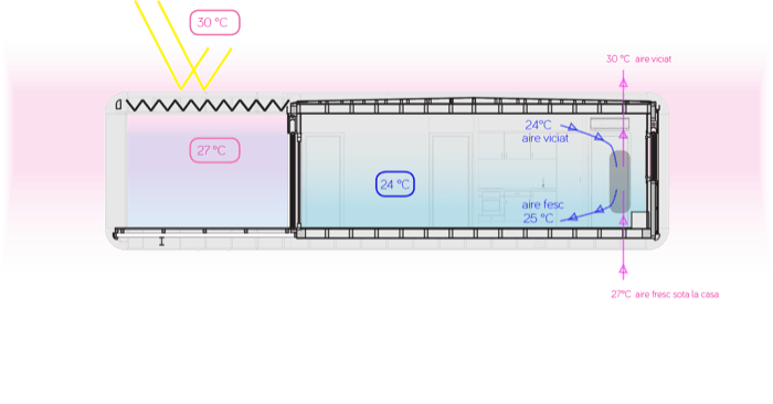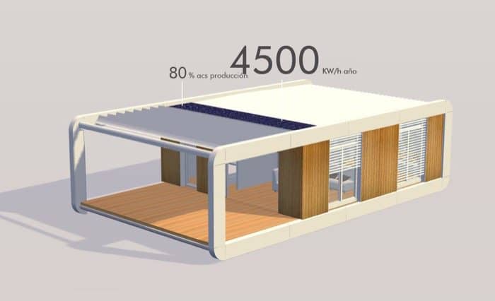 - La casa prefabricada NOEM es de energía cero, esto significa que puede llegar a ser autosuficiente mediante el uso de paneles solares.