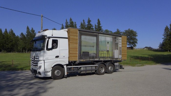 El proyecto de esta casa modular fue realizado por Gerhard Feldbacher, quien ya se ha paseado con ella por Europa asistiendo a varios conciertos.