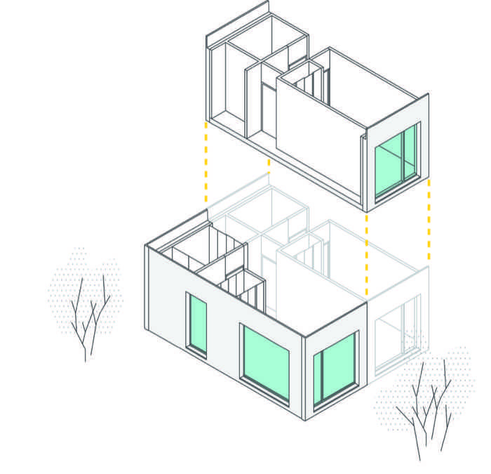 Utilizando el muro de hormigón como elemento básico, el método de esta firma ha consistido en crear 15 «módulos básicos» y 12 «módulos extra». Al combinarlos entre sí, generan un amplio abanico de posibilidades, todo ello con la idea de que al cliente le sea fácil configurar la vivienda que se ajuste a sus necesidades. Con ello se ha conseguido que sea relativamente sencillo configurar una de sus casas modulares. El proceso que se inicia escogiendo primero un tipo de vivienda, luego añadiendo tantos módulos como se necesiten, ya sea para poner más habitaciones, tener una cocina más grande, un garaje, incluso hasta una segunda planta. El último paso consiste en elegir los acabados, ya que la vivienda llegará completamente terminada, en un proceso que viene a durar unas 14 semanas.