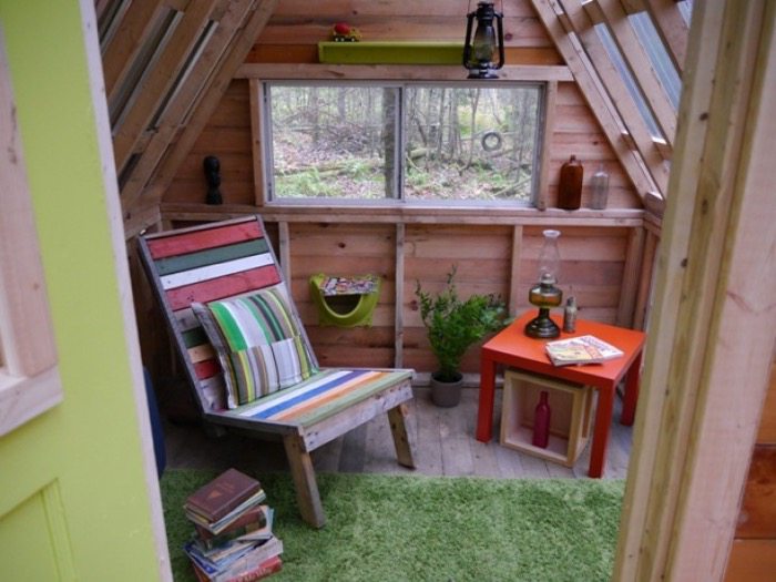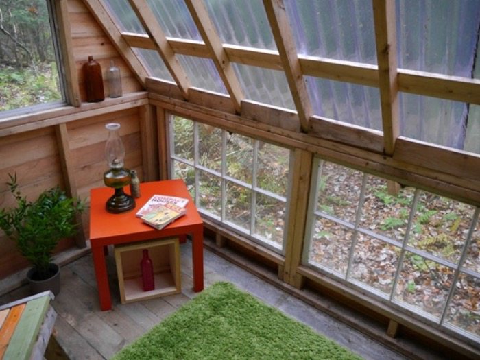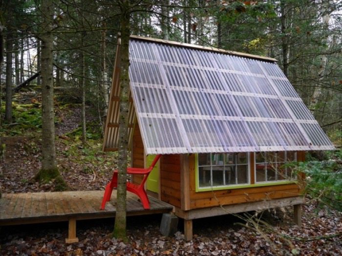 Lógicamente con ese tamaño, no tiene cuarto de baño ni cocina. Pero no importa, porque a intención original del proyecto era servir como apartada sala de lectura en un bosque de Vermont. También puede utilizarse como cuarto de huéspedes anexo a una cabaña principal cercana. Esta habitación no tiene electricidad, se vale de una cubierta translúcida de policarbonato para tener luz durante el día. Cuenta con una lámpara Coleman (de aceite) y velas para las horas nocturnas.