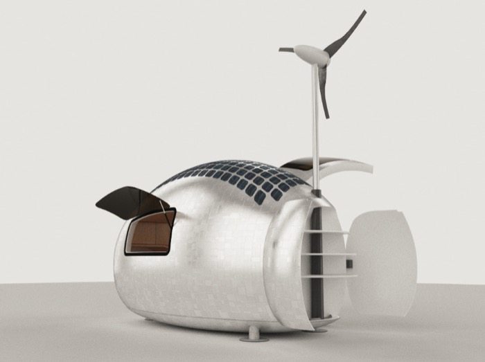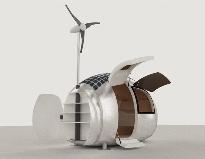 Ecocapsule puede ser una estupenda solución para quienes se estén planteando un alojamiento en algún lugar perdido, y que además prefieran que sea una construcción sostenible y autosuficiente. Con su forma de huevo, y un volumen compacto, esta casa mínima prefabricada tiene capacidad para funcionar completamente desenchufada de la red, y la ventaja de cualquier pequeña construcción portátil.