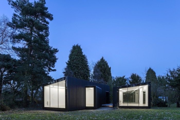 Estos pequeños edificios se construyeron en una finca de Suffolk, un condado situado en la parte oriental de Inglaterra. El cliente deseaba tener dos refugios multifuncionales en el jardín de su casa, que proporcionaran un lugar de aislamiento y tranquilidad para sus ocupantes, y que además tuvieran buenas vistas a los jardines.