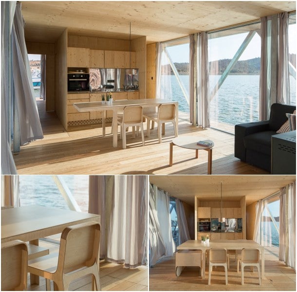 Floatwing puede ser una solución ideal para quienes les gusta disfrutar de la naturaleza cerca del agua, practicar remo, vela, pesca,… y utilizarla como hogar temporal para toda la familia. Esta peculiar casa prefabricada se basa en un concepto modular que tiene una anchura fija de 6 metros. Pero que puede variar en longitud, según nuestras necesidades, ya sea para utilizarla como un estudio flotante, o como una casa de más habitaciones, completamente amueblada en plena naturaleza.