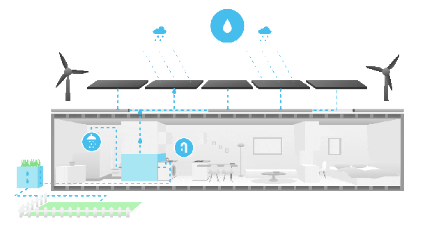 Con este espacio habitable es posible vivir en cualquier parte. No hace falta estar conectado a una red eléctrica, de agua, o de saneamiento; esto es así porque puede producir energía mediante paneles solares y turbinas eólicas. También tiene la capacidad de recoger, almacenar y filtrar el agua de lluvia. Y por si eso fuera poco, puede realizar el tratamiento de aguas residuales.