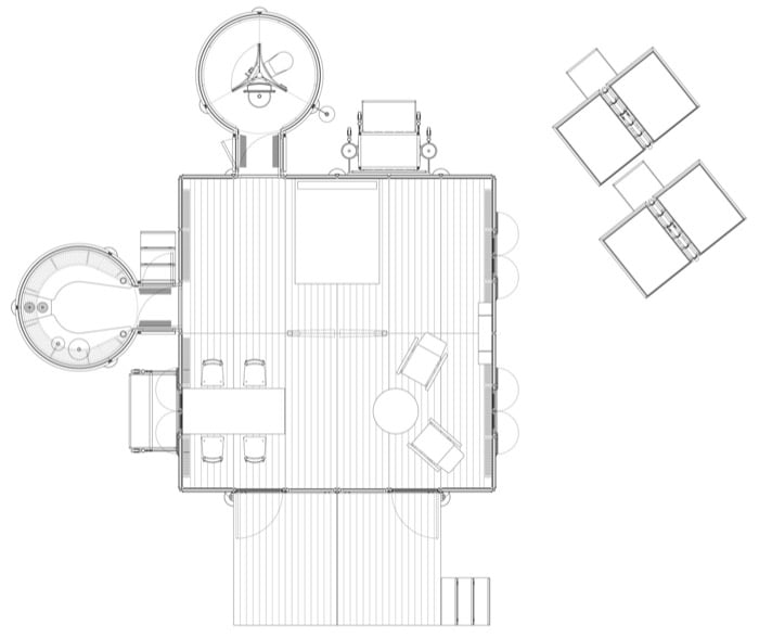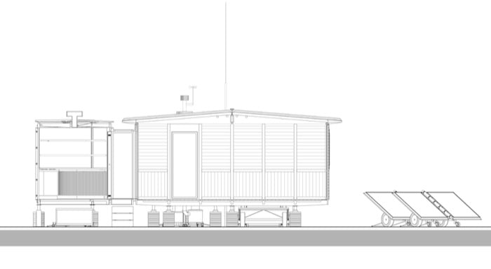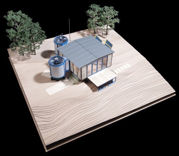 Como se puede ver en las fotos y vídeos, se mantuvo el formato original de la casa desmontable (pórtico incluido). Pero con más entrada de luz natural por la fachada principal, además de añadírsele una cocina y un baño. Con esta configuración se consiguió una completa casa prefabricada que puede resultar idónea para unas vacaciones. Además dispone de agua caliente y energía eléctrica mediante unos paneles solares.