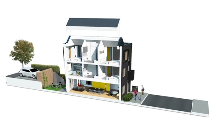 Son las primeras 43 viviendas de un modelo prefabricado al que se le ha llamado hoUSe. Y corresponden a una promoción que está en el barrio New Islington de Manchester (Reino Unido). Este proyecto es insólito por dos motivos. Primero porque se trataba de producir en taller una tipología de casa adosada, algo nada habitual. Segundo, porque los propietarios tenían la oportunidad de elegir entre diferentes configuraciones, con uno, dos, tres, o más dormitorios (hasta 5). También tenían la posibilidad de escoger entre una organización abierta de los espacios, o más segmentada, con un estilo más convencional.