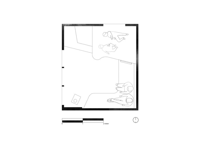 Los estudiantes primero realizaron una maqueta a escala 1:1, con el fin de resolver mejor los problemas presentados. Más tarde construyeron el pequeño refugio en el sitio. Para ello contaron con la ayuda financiera de GC Rieber Funds. La madera se empleó en un 95%, estando el interior revestido de madera contrachapada y tableros de madera; el exterior se hizo con madera quemada de alerce (shou sugi ban). El túnel de entrada se materializó con tablillas curvadas de madera de pino; y la fachada sur se completó con madera de alerce sin tratar, que se vuelve más gris con el paso de los años.