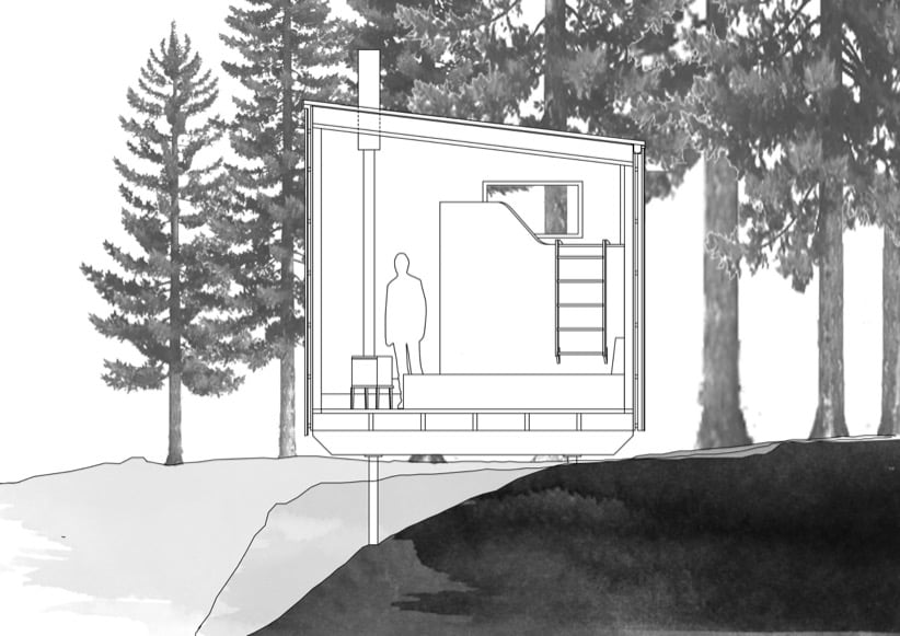 Este pequeño refugio de madera salió de un taller de proyectos de la Escuela de Arquitectura de la Universidad de Bergen (Noruega). El trabajo consistía en realizar el diseño y la construcción de un refugio que debía funcionar como alojamiento gratuito. Está ubicado en una de las siete famosas montañas de Bergen. La intención era permitir que la gente pudiera pasar una noche en el bosque.