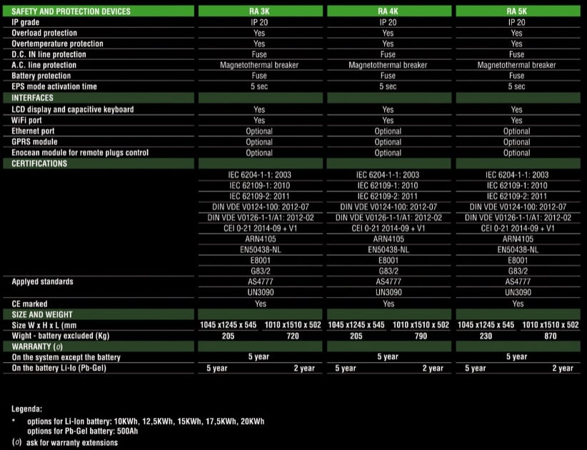 - El Ra Store viene configurado de fábrica para que sea «conectar y listo». Dispone de un panel táctil para el control y monitorización de la producción de energía, aportando información del nivel de carga de las baterías, consumo de la red… Todo ello en tiempo casi real, pues se actualizan los datos cada minuto.