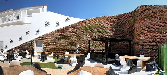 En el hotel Ushuaïa (Ibiza, España) instalaron un muro ajardinado, del tipo Eco.bin, como barrera acústica. El sitio elegido fueron varios muros localizados entre la discoteca al aire libre, y los apartamentos próximos. El resultado final quedó muy original, y aportó una imagen atractiva y fresca al patio central del hotel.