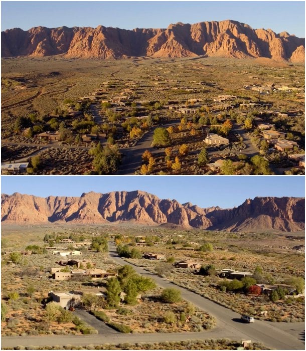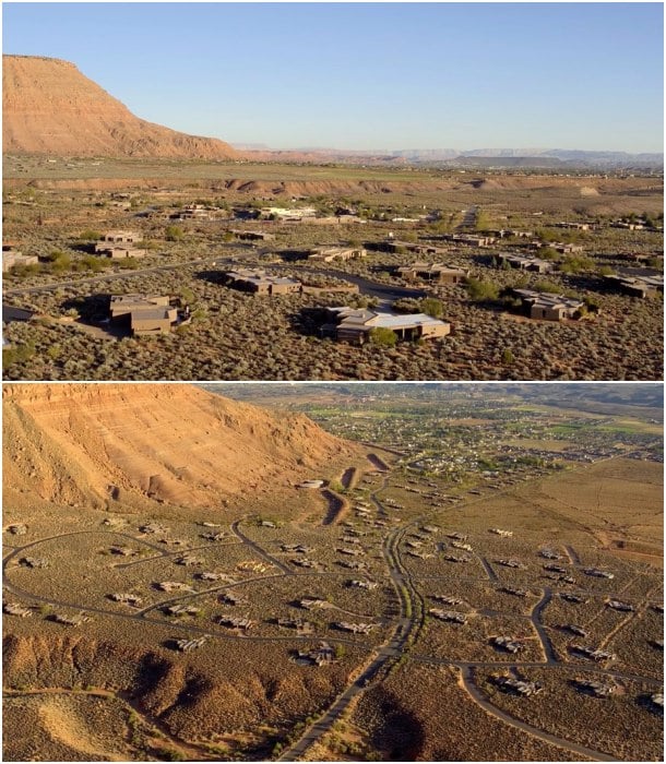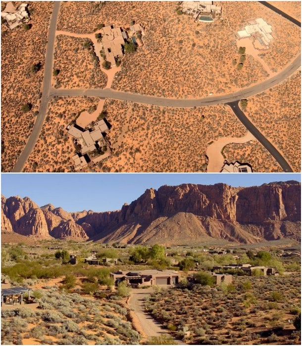 Kayenta es una urbanización sostenible, situada al oeste de St. George, en el bello desierto de Utah. Esta planificación podría considerarse una locura, al estar rodeada de áreas protegidas, pero se llevó a cabo con una arquitectura baja que se integra perfectamente en el entorno.