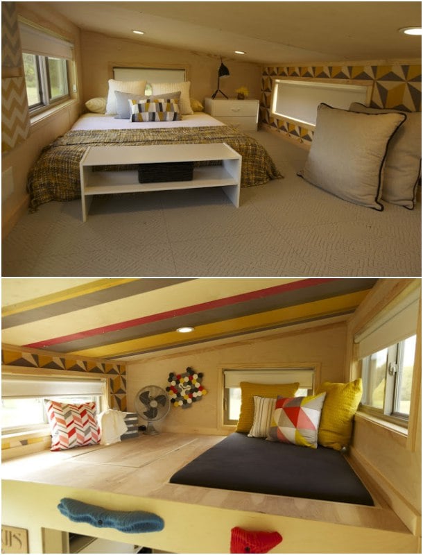 No es habitual que una vivienda móvil esté diseñada con más de un altillo. Hemos visto algún modelo con dos, pero se trataba de un segundo loft para almacenaje. La vivienda Z Huis es diferente, porque estamos ante un ejemplo de pequeña casa móvil con dos altillos, donde ambos son utilizables para dormir.