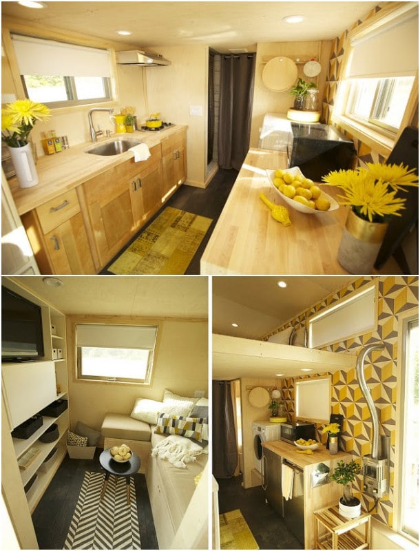 Esta pequeña casa móvil fue diseñada por Wishbone Tiny Homes. Es una empresa que se dedica a satisfacer las necesidades del comprador de pequeñas viviendas. Fabrican casas para colocar sobre una cimentación, o móviles (sobre remolque) en tan solo 7 días. También venden planos de construcción.