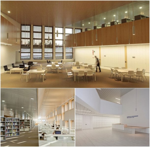 Estas fotos y planos son del Edificio Carmen Martín Gaite. Es una obra para la Universidad Carlos III de Madrid, y es también el primer edificio educativo sostenible en España en conseguir una certificación LEED Platino.