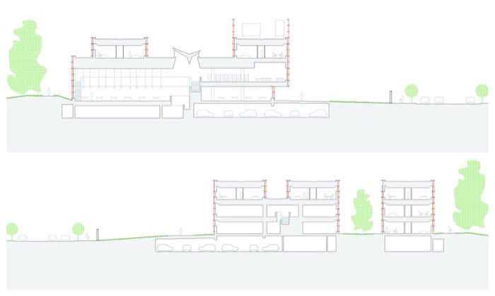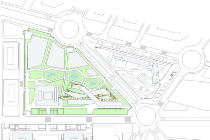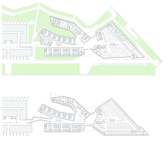Varios volúmenes se establecen a ambos lados de un parque lineal. Se ha dispuesto una pasarela que une la obra nueva con la preexistente. Siendo también posible cruzar el edificio por su parte central, a través de un vestíbulo. Esto hace que el nuevo parque se mantenga conectado con el resto del campus.