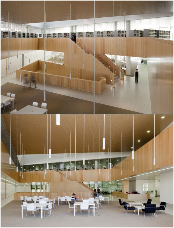 Las azoteas tienen grandes superficies ajardinadas y, arquitectónicamente hablando, los espacios interiores son de lo mejorcito que hayamos visto en mucho tiempo, en lo que a edificios educativos se refiere. A pesar de contar con esa certificación LEED, no se han publicado más datos de otras estrategias verdes incluidas.