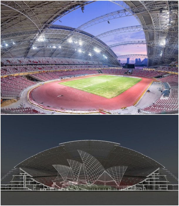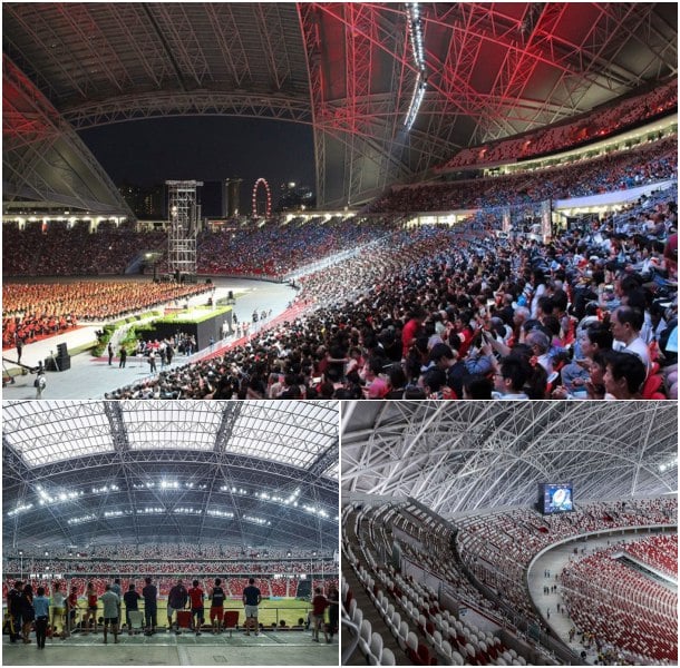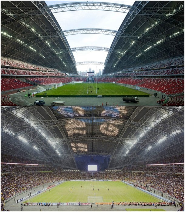 El Singapore Sports Hub es un complejo deportivo que se conoce principalmente por su cubierta retráctil. Con sus 310 metros de arcada, es la cúpula más grande del mundo. Esto la ha convertido en otro hito de la arquitectura moderna que se debe visitar en Singapur.