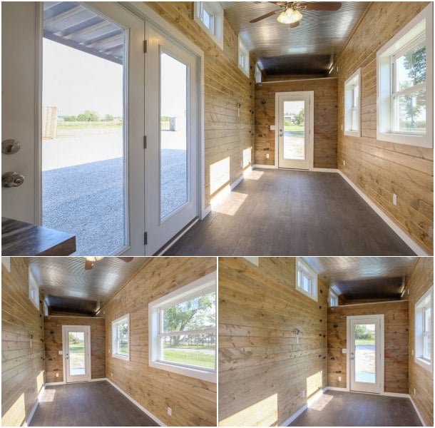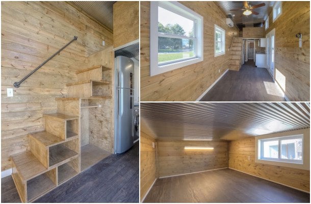 Un contenedor de 40 pies tiene una altura libre interior de 239cm. Pero esa altura es insuficiente para la instalación de cualquier altillo. Ese fue el motivo por el que se le añadieron 30 pulgadas (76,2cm). De esa manera la casa podría ampliar sus capacidades de almacenamiento y de habitabilidad, como veremos a continuación.