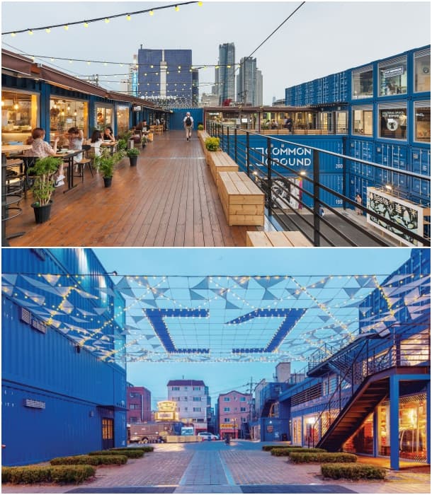 Este centro comercial con contenedores fue realizado por la firma Urbantainer. Se trata de una compañía que empezó a funcionar en el 2009, con la intención de llenar un vacío en el panorama creativo de Seúl. Pronto se convirtió en parte integral de los clubs EDM, con las primeras campañas de marketing y la presencia de la arquitectura modular. Urbantainer emplea dos equipos para desarrollar sus trabajos. Por un lado está el ESB (Entertainment Space Branding), y por otro el MAP (Modular Architecture Platform). El primero se encarga del desarrollo de tiendas pop-up y de algunos clubes EDM de Seúl. El segundo equipo está especializado en arquitectura modular, empleando precisamente contenedores de carga ISO.