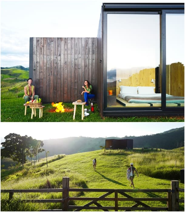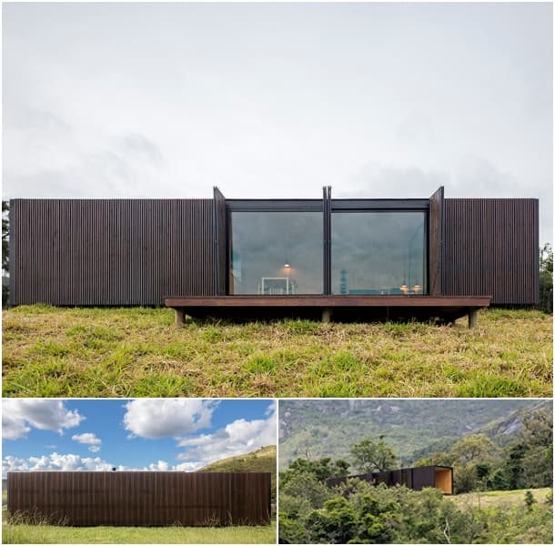 Fazenda Catuçaba está localizada al este de São Paulo (Brasil). Esta finca estuvo vinculada a la producción de café, y cuenta con un antiguo caserón colonial. Su paisaje es ondulado, pues está dominado por una cadena montañosa, pero también está cerca de la costa. Estos terrenos se consideraron idóneos para la ubicación de dos refugios para alojamiento rural. Para ello se eligió el diseño de la casa minimalista MiniMod, ya analizada en nuestro blog.
