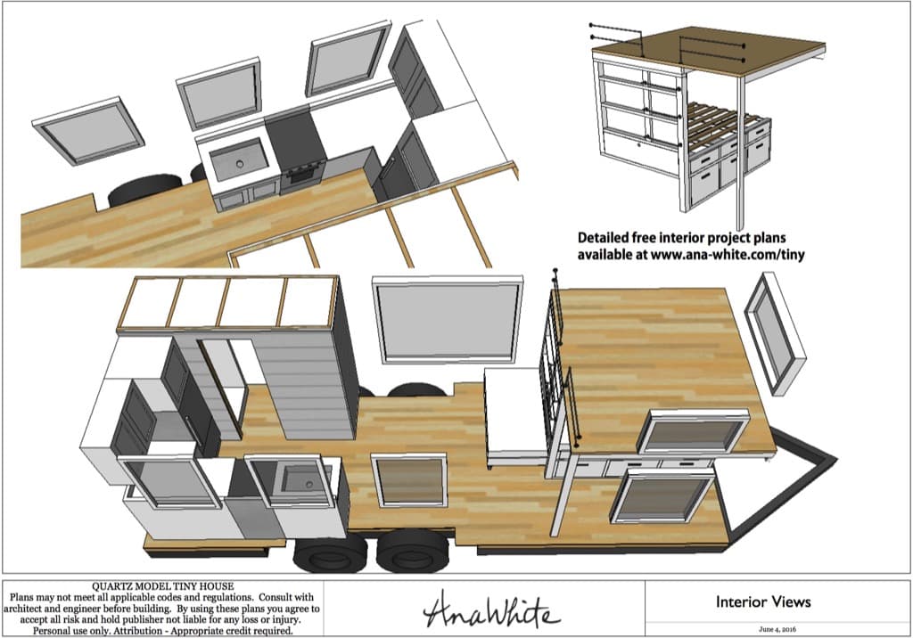 Recuerda que estás usando los planos de la casa diminuta Quartz bajo tu responsabilidad. Recomendamos que antes de construir, consultes con un arquitecto de tu zona.