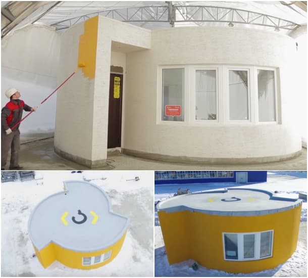Esta pequeña vivienda ocupa un área de 36,85m2, y su estructura se hizo en un tiempo récord, en la localidad de Stúpino (cerca de Moscú). Esa rapidez de ejecución (24h) fue posible gracias al método empleado: una impresora 3D móvil. Se trata por tanto de una casa impresa en 3D, que además es bastante barata, pues su coste ronda los 275$/m2.