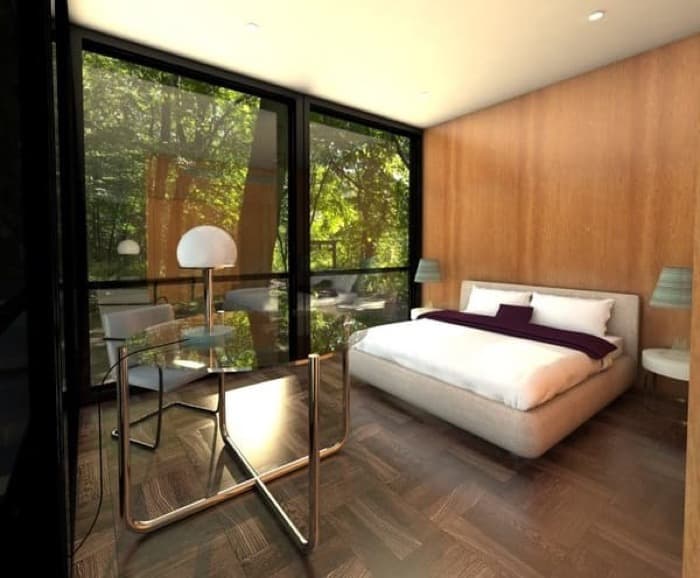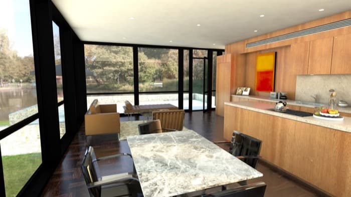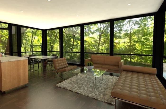 La Modular Glass House es una versión prefabricada de este clásico de la Arquitectura. Está formada por módulos que se producen en taller y se envían a cualquier parte, y todo ello manteniendo el estilo de la original. También tiene la fachada completamente acristalada, y una decoración interior bastante parecida.