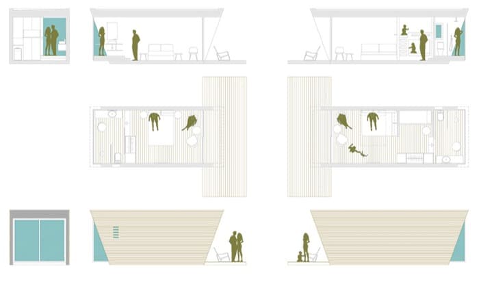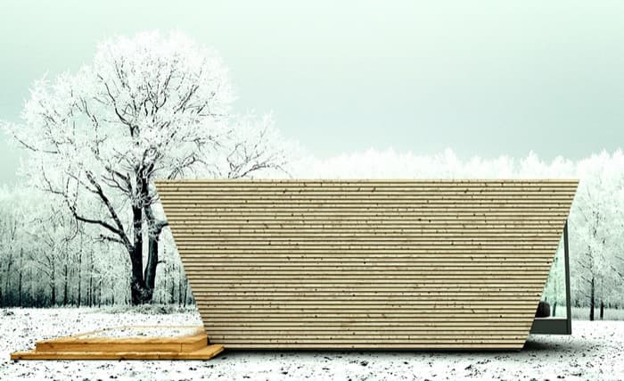 Esta construcción prefabricada está diseñada para tener un mínimo impacto medioambiental, por eso se construye en taller. Luego se coloca en el sitio sin apenas cimentación, para alterar lo menos posible el terreno. Su diseño es una evolución de otros modelos realizados por el estudio In-Tenta, del que ya conocimos su habitación DROP. Pero el volumen de Drop Box es más sencillo, y de superficies planas, manteniendo la misma metodología constructiva.