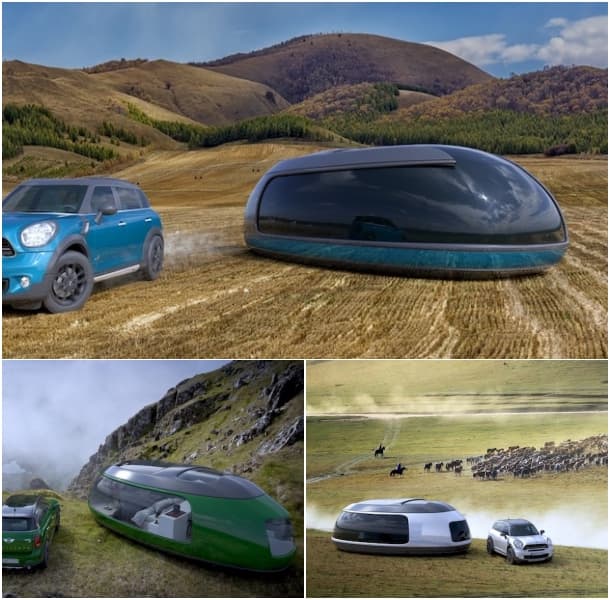 A estas alturas, este tipo de diseño ya no debiera de sorprender a nadie. ¿Está todo inventado? Prefiero creer que no. Pero esta habitación para acampada recuerda demasiado a la maravillosa casa mínima EcoCapsule. En esta ocasión parece que el diseño se creó para promocionar cierto modelo de coche. Al menos eso es lo que se desprende de estos renders, y de lo publicado en determinados sitios de la red (ejemplo).