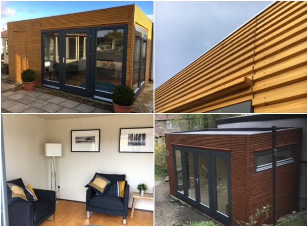 Es fácil que alguna de estas casetas contemporáneas se ajuste a nuestras necesidades. Pueden servir muy bien como oficina, y la solución de colocar el canalón dentro de la cubierta, es bastante ingeniosa y práctica. Este fabricante ofrece una garantía de 5 años en sus productos.