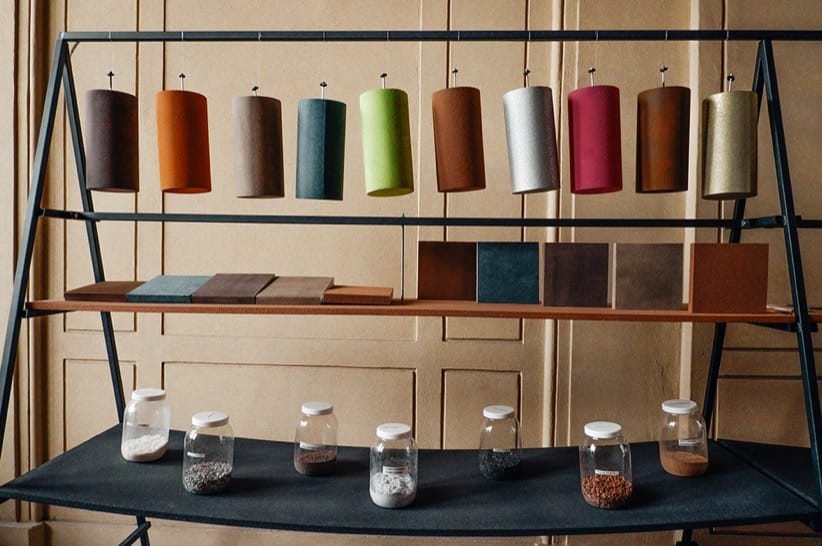 En Milán, Cooloo mostró al público los materiales de desecho locales que habitualmente emplea en sus telas: jeans, corcho, cuero, y otros.