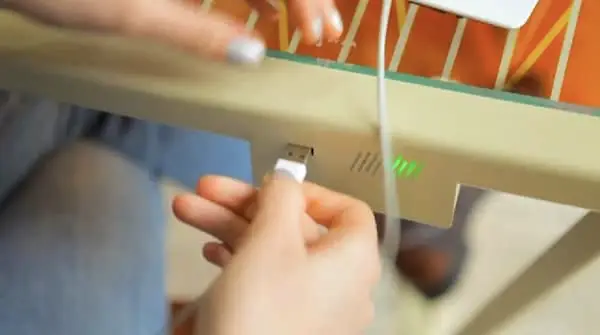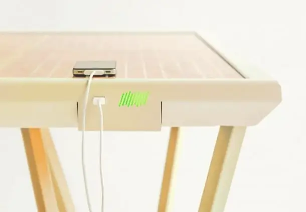La mesa recarga los dispositivos a través de su puerto USB, situado en un lateral. Pero además dispone de una batería para almacenar el exceso de energía generada.