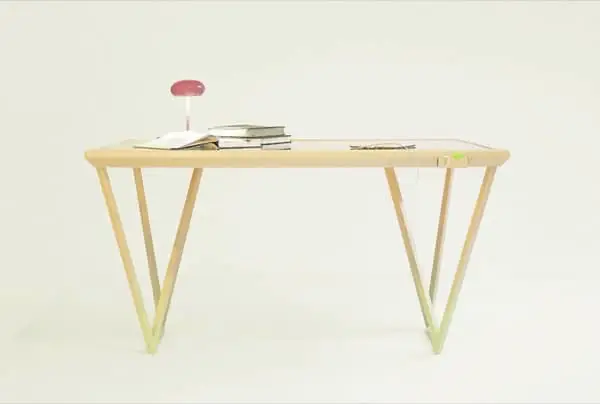 El escritorio está formado por un vidrio de color anaranjado, debido a que incorpora celdas solares sensibilizadas por colorante (también conocidas como células solares Graetzel). Estas celdas tienen la capacidad de convertir la luz interior difusa en electricidad. El electrodo en este caso está compuesto por nanocristales de dióxido de titanio depositados en el vidrio. Debido a su tecnología, este diseño está considerado como el primer mueble que captura energía en interiores.