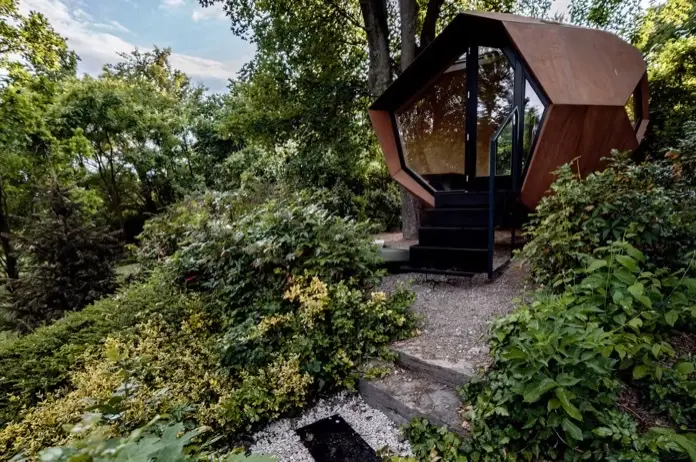 Hello Wood es una firma húngara de arquitectura y diseño que ha experimentado una fascinante evolución. Surgió como un campamento de verano en 2010, y ahora es una destacada productora de pods prefabricados. En 2020, durante la pandemia, su cápsula Pebble encontró su lugar al satisfacer la alta demanda de espacios de trabajo aislados.